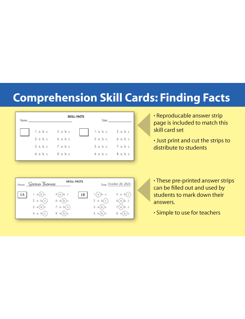 FREE! Finding The Facts - Comprehension Skill Cards - Passages - Activities