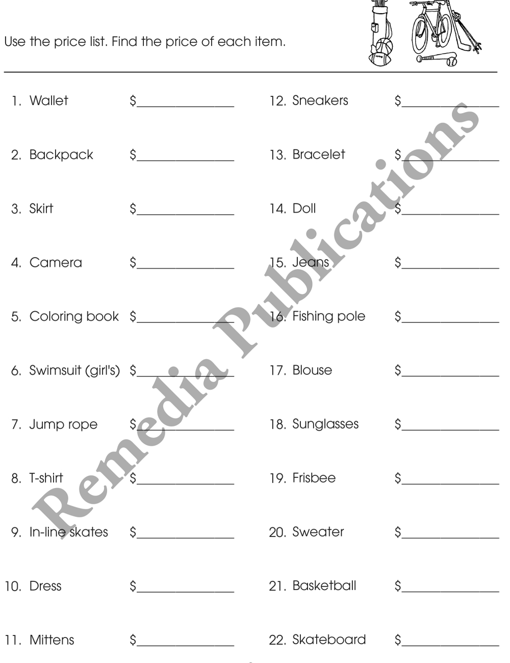 From sunglasses to shirts, nearly everything you might shop for can be found on the colorful price list and in the 'real life' math activities included in these unique lessons! Designed for success, these step-by-step lessons include picture cues to help students with limited reading skills solve the math word problems. These fun activities are designed to appeal to students of ALL ages who need essential math skills practice, and are perfect for enrichment, review or remediation.