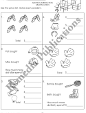 These hands-on lessons teach simple addition, subtraction, and multiplication through the use of 'real-life' situations and picture cues. Students will have a great time as they refer to the colorful price list to determine costs when spending money at the store. The colorful, easy-to-read price list generates 600 simple computation and math word problems sure to improve any student's math skills!