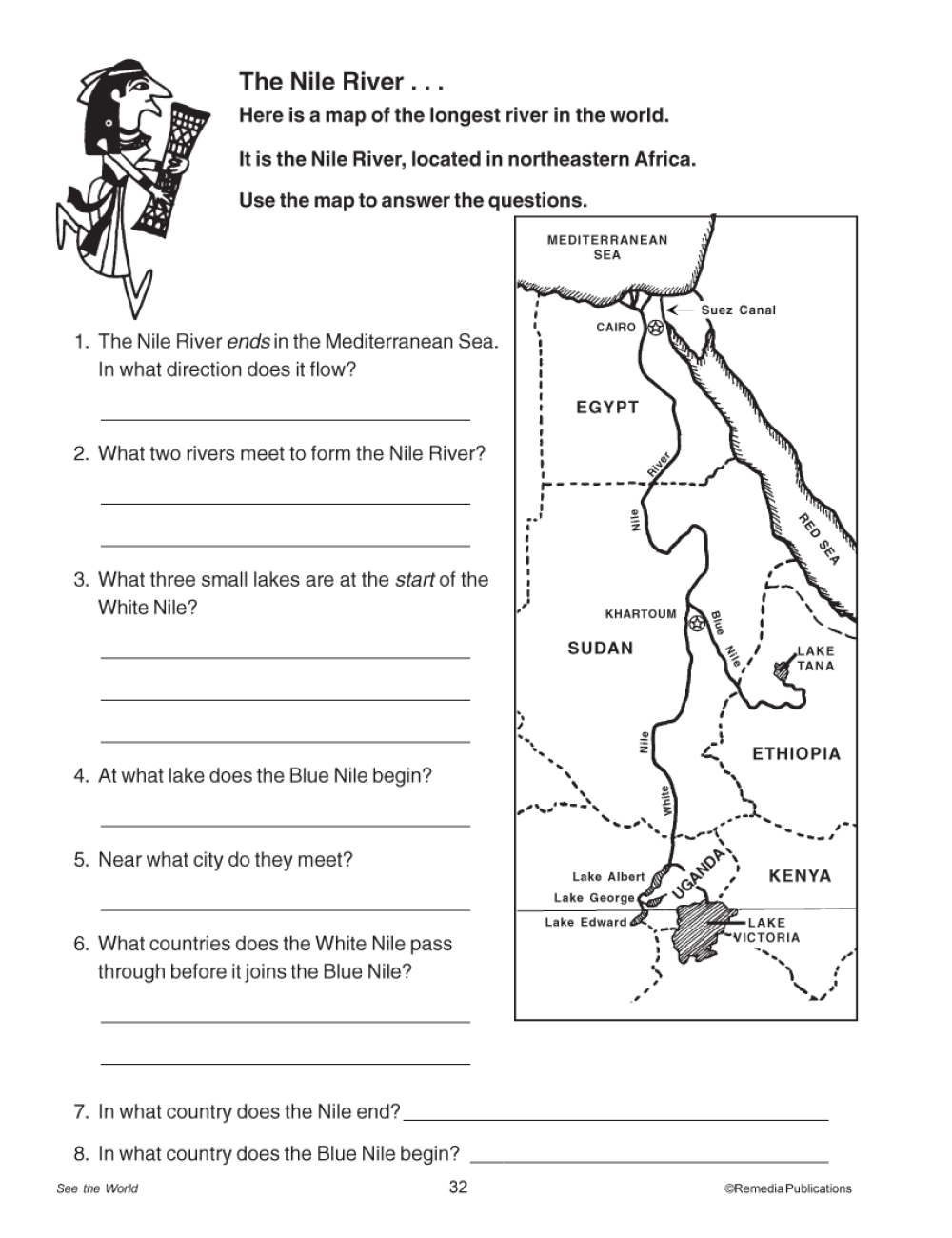 Your students will love discovering fascinating facts about Africa while they improve their reading comprehension and geography skills. Students zero in on countries and regions on a variety of maps to learn about about Africa. Skills emphasized in this unit include: using a legend or key, using symbols and patterns to interpret features, using terms of direction (far, near, above, below, etc.), using cardinal directions (north, south, east, west), and much more! The six activities in this unit cover the Nile River, Northeast Africa, Northwest Africa, Central Africa, and Southern Africa. Aanswer key included.