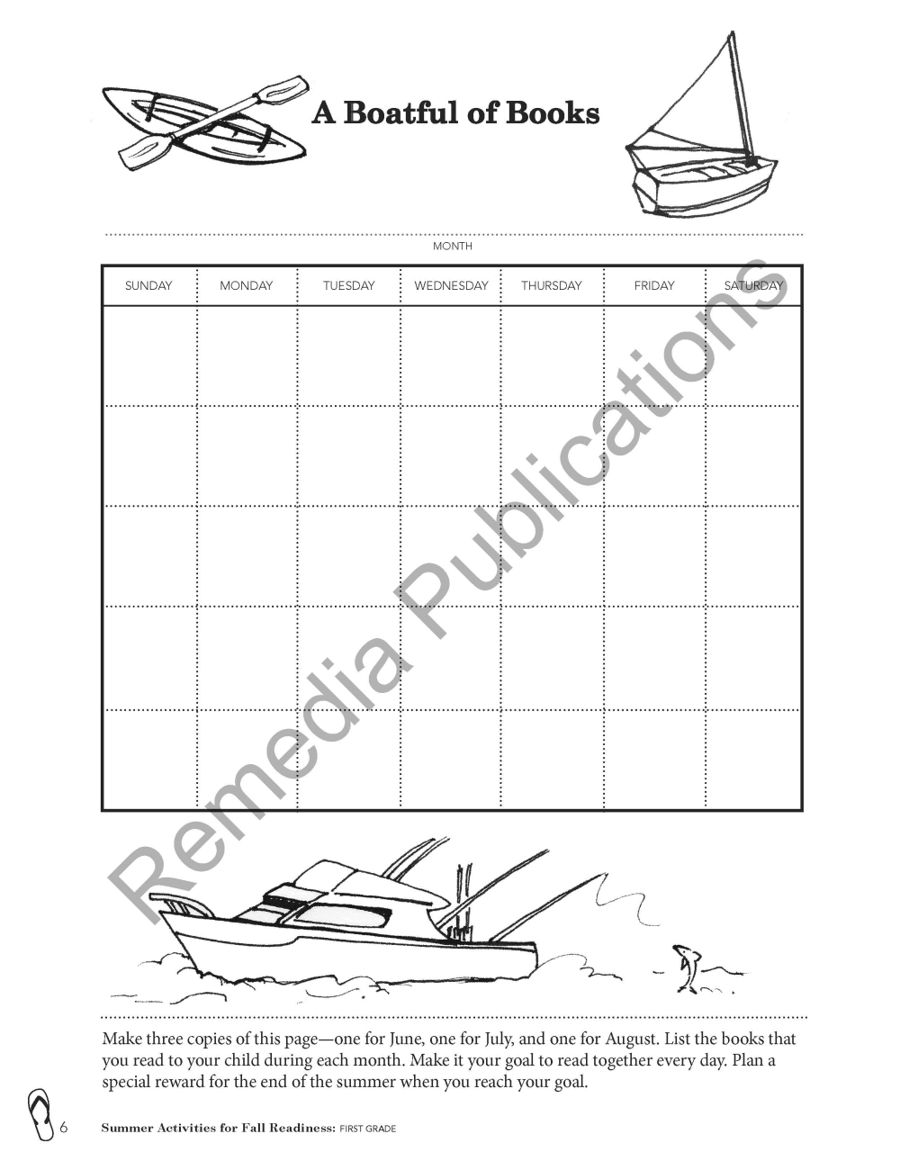 This book is divided into 10 one-week sections. There are five reading/language arts activity pages and five math activity pages to work on each week. The first half of the book is dedicated to reviewing previous grade skills and the second half provides a sneak-peek at what your child will learn in the next grade. Pages are clearly marked so that you'll know at a glance if your child is working on a review skill or a look ahead skill.