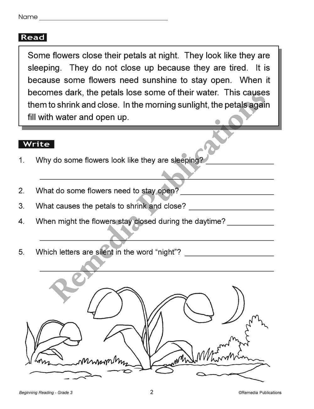Each activity page includes an appealing short story followed by questions to test comprehension. Besides questions relating directly to the story, additional questions designed to reinforce specific reading skills such as finding a fact, word analysis, vocabulary, and inference are included.
