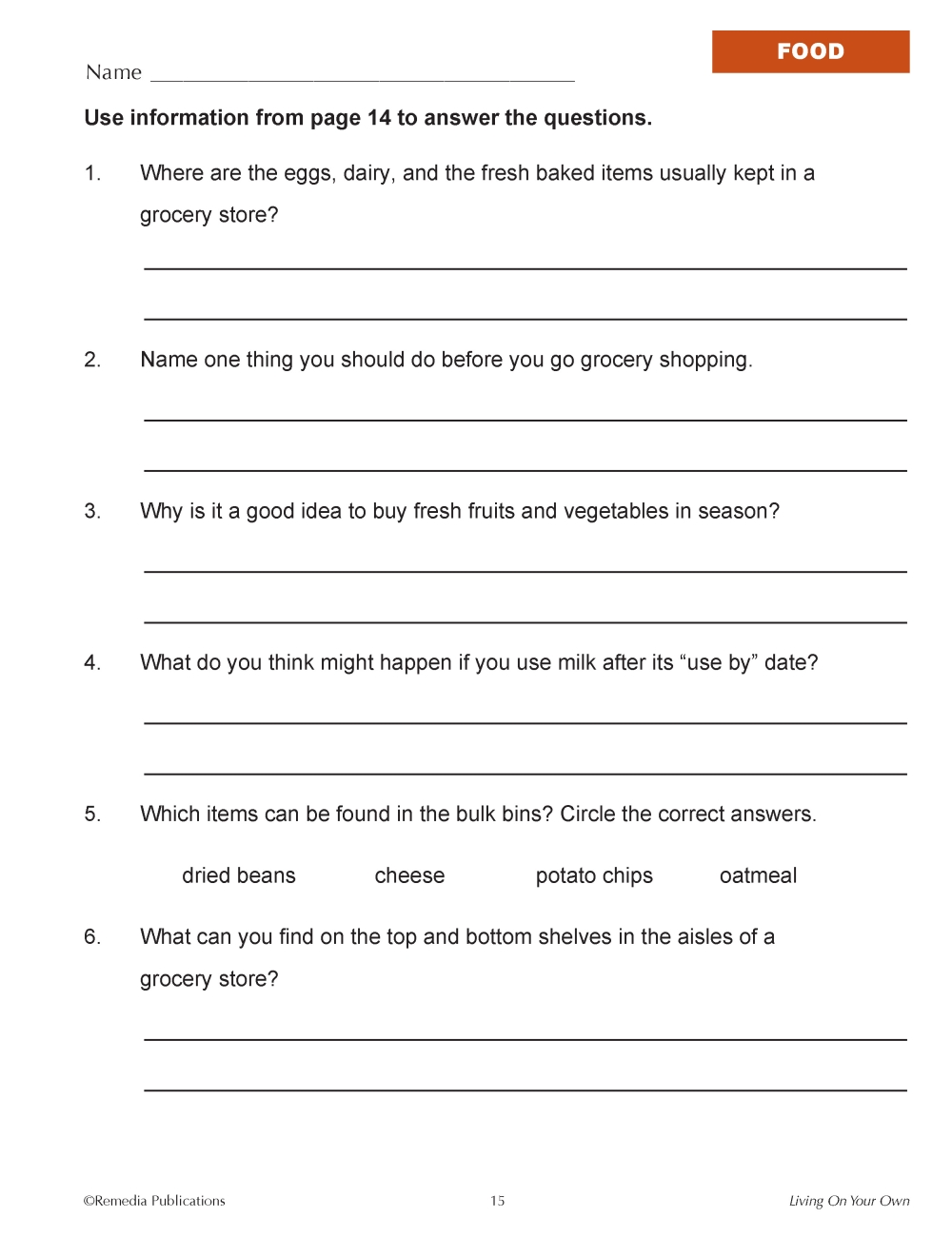 How do you make the transition from living at home to being responsible for yourself? Students learn how to set up their household, grocery shop, plan meals, follow a recipe, clean up, and do laundry! Additional topics include health and safety at home.