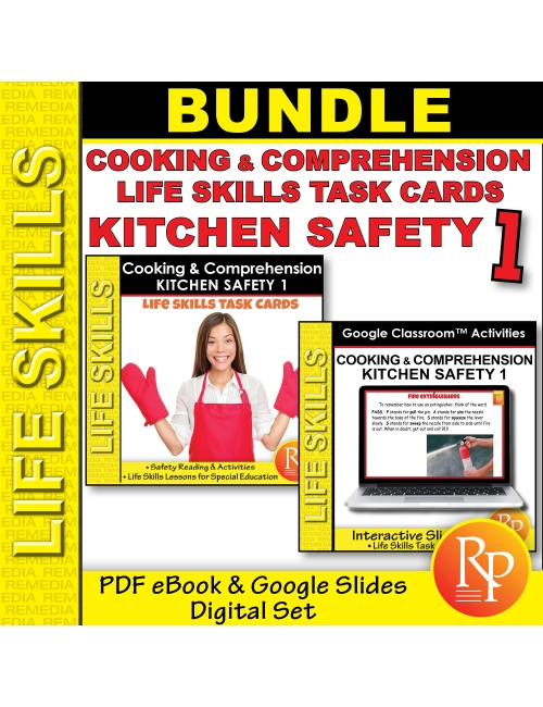 Is it time to teach KITCHEN SAFETY? Get this Cooking Safety Bundle which comes with Google Slides & Printable full-color PDF Pages? These easy-to-use & highly-visual lessons are ready when you are! Short reading passages introduce students to key safety topics, while simple multiple-choice questions challenge students to show what they know. A great way to teach kitchen safety and life skills in a very deliberate and explicit manner! For students of all ages.