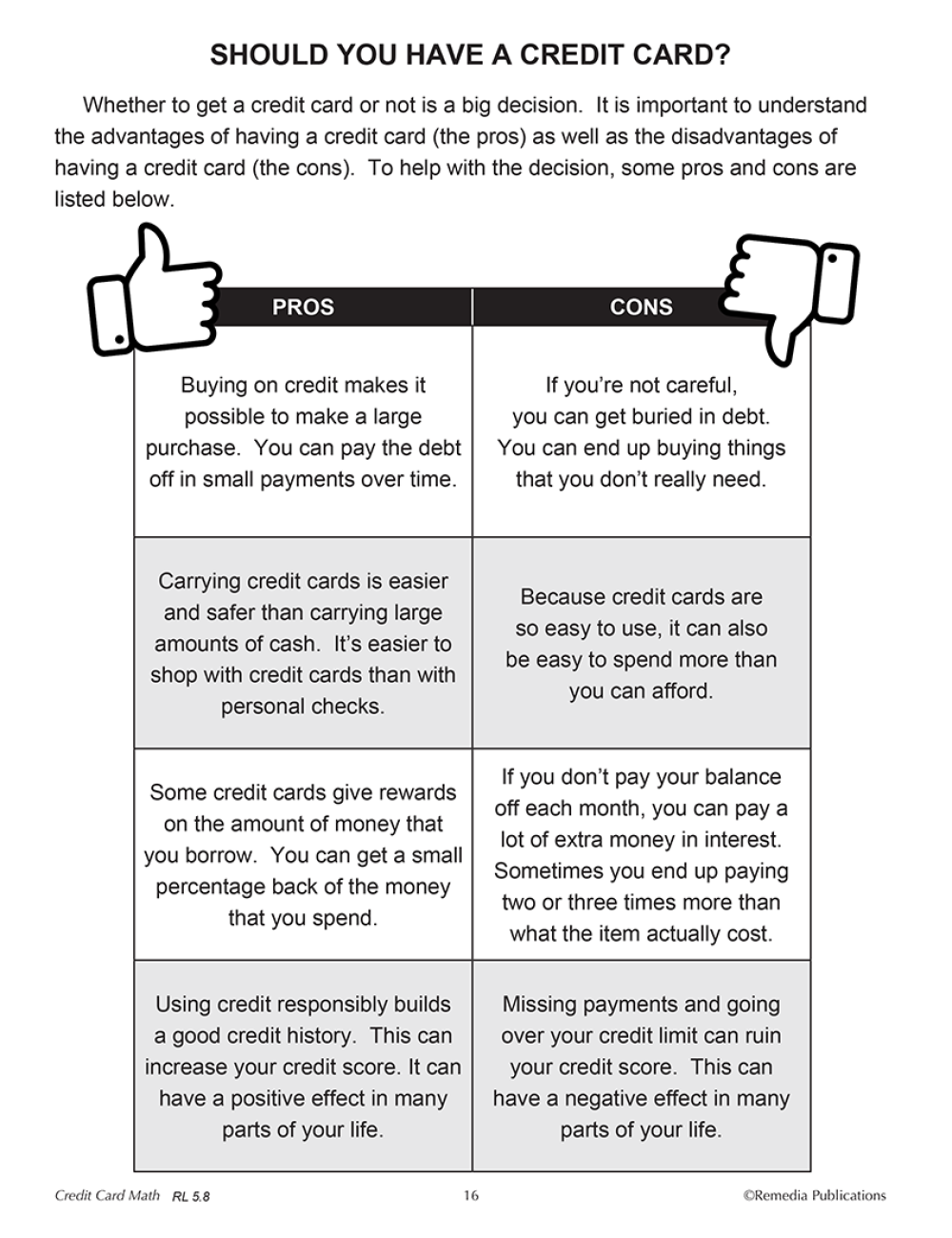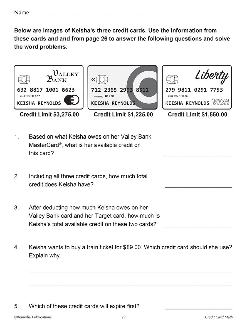 Students will gain hands-on experience practicing the math they will use in the real world. The realistic activities in this series will teach students about paying bills, keeping a transaction register, filling out a credit card application, shopping online, using a debit card, making and keeping to a budget, shopping for the best buy, and so much more!