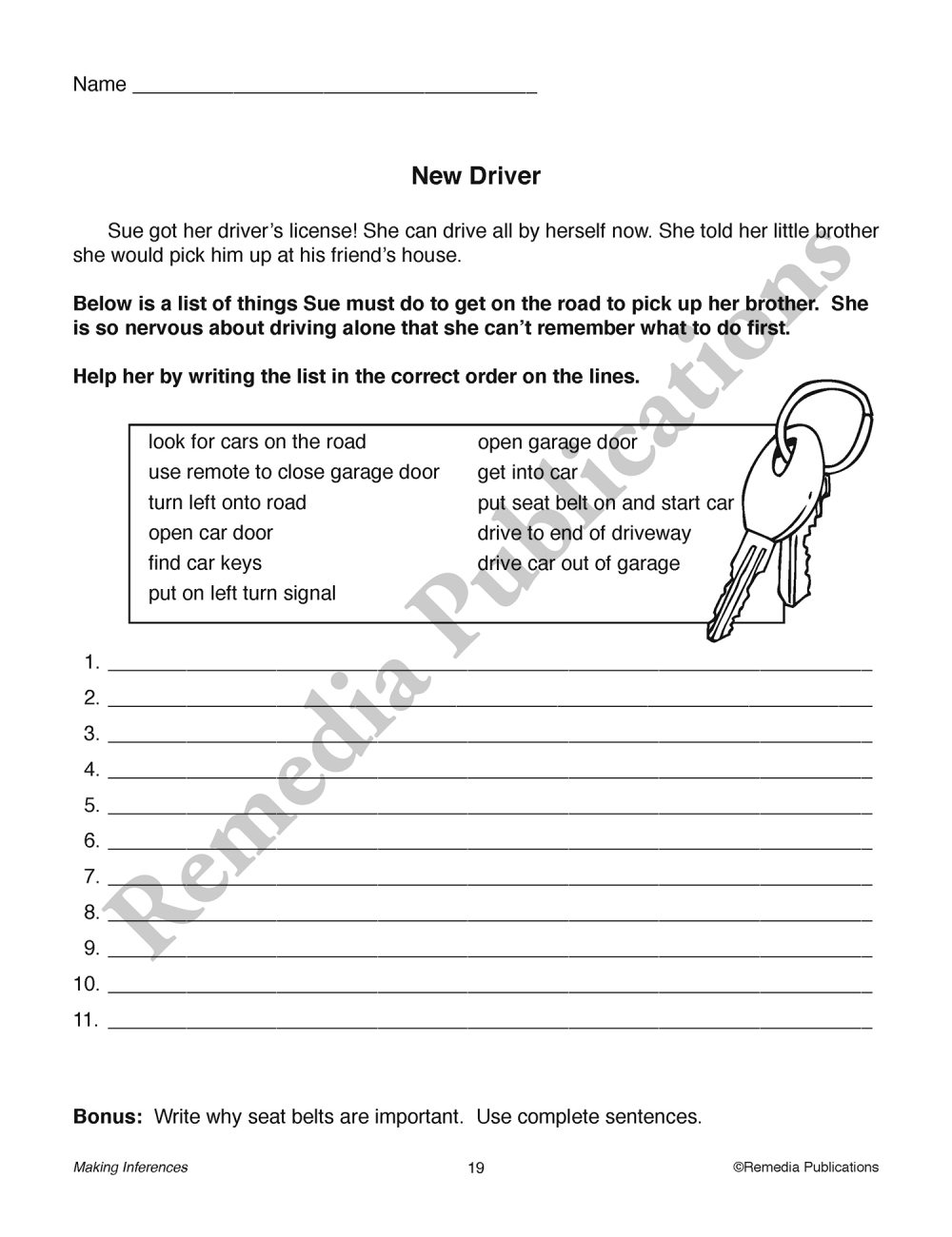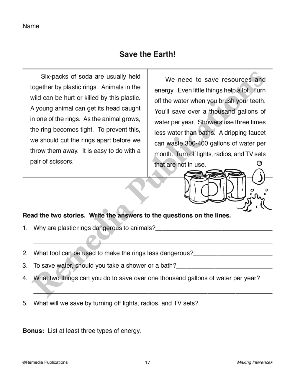 The stories lack some facts that the reader must infer from the text in order to detect certain details. Questions following each story test student’s ability to recognize information that is implied but not directly given.
