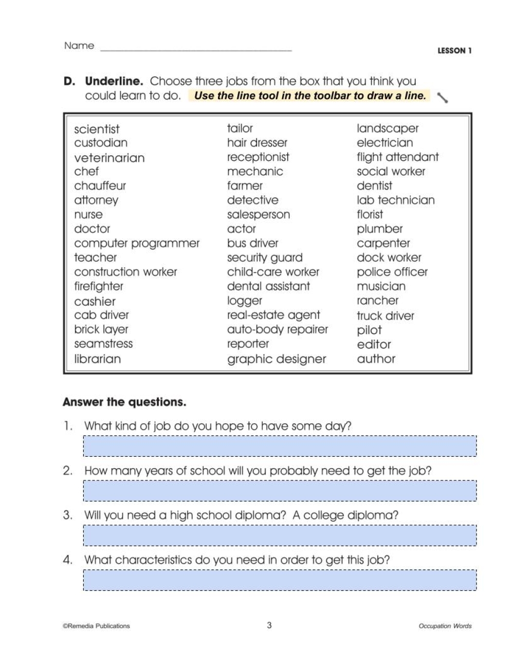 Google Classroom Activities: Occupation Words - Life-Skills Lessons