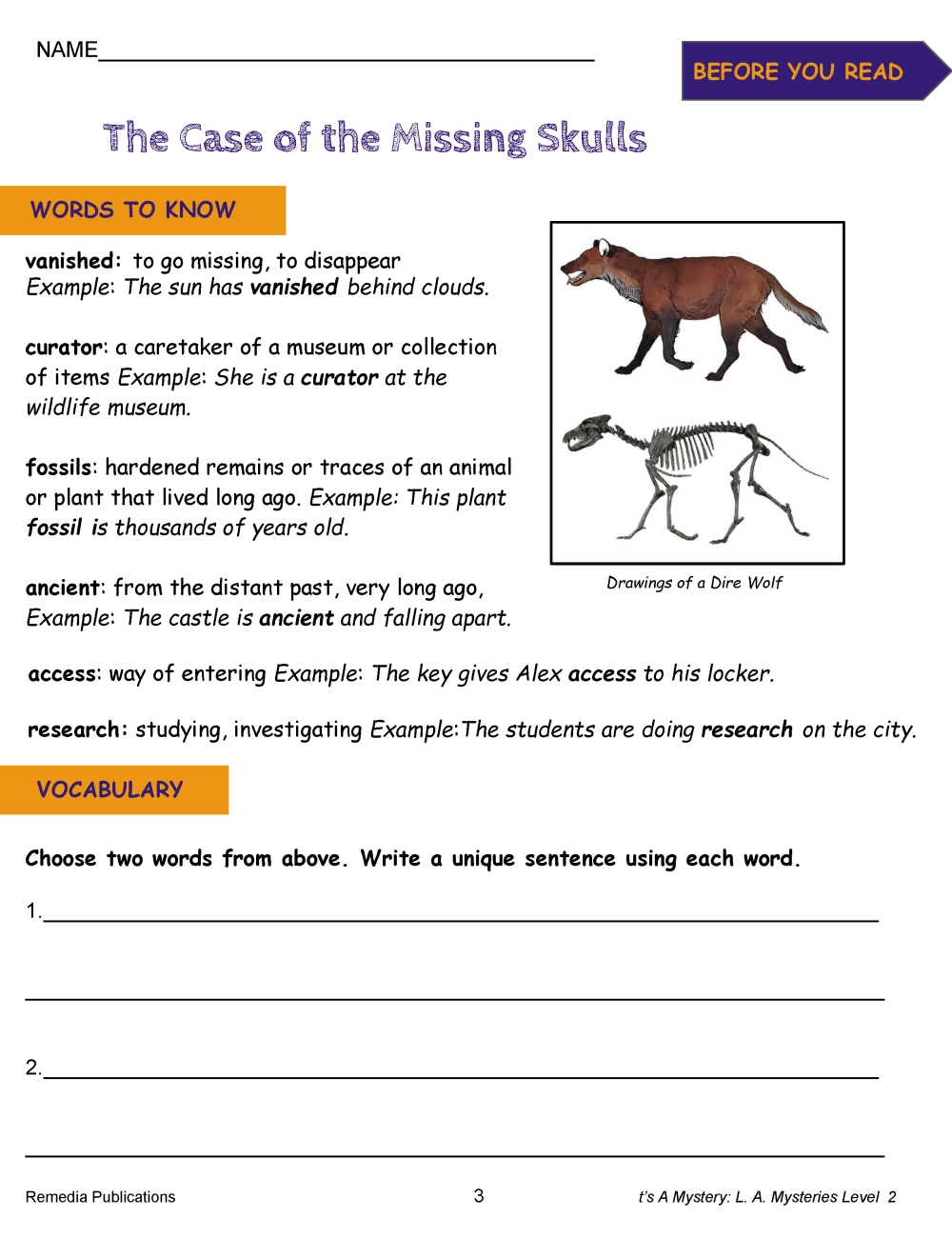 PRE-READING ACTIVITIES:Pre-reading exercises introduce vocabulary and help students establish prior knowledge by providing background information and fascinating facts. Colorful photos and graphics help keep students engaged. They even get to try their hand at predicting...INTRIGUING MYSTERIES:Guaranteed to Engage Even the Most Reluctant Readers! Each mystery is full of clues that students will love to discover! Students travel all over L. A. to solve each mystery. From the spooky La Brea Tar Pits to sunny Malibu Beach, and the Griffith Park Observatory to the Jurassic Park ride at Universal Studios, students will love gathering evidence, looking for motives, and solving each mystery...AFTER-YOU-READLEVEL 2 COMPREHENSION ACTIVITIES:These more challenging comprehension questions target specific reading skills including reading for details, using context clues, sequencing events, making inferences, drawing conclusions, predicting outcomes and much more! Colorful lessons along with a varied question format, ensure students stay motivated to “solve the mystery.”