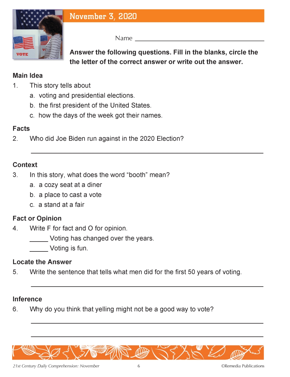 Stories feature recent events from the 21st century and are followed by skill-specific comprehension activities to sharpen essential reading skills. Questions are clearly labeled with the standard/skill that it meets.