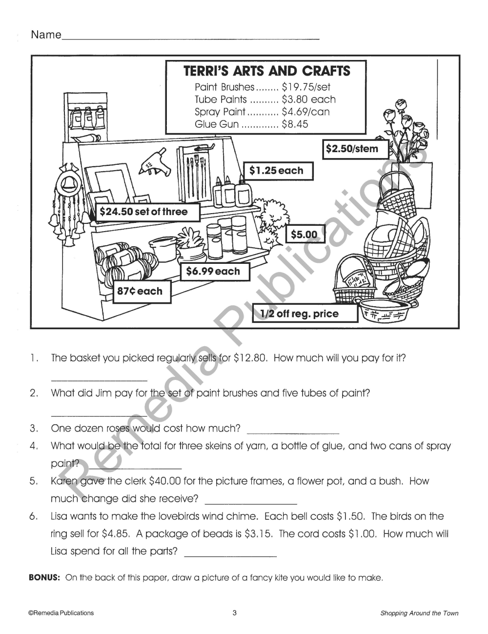 The easy-to-read activities are sure to help students practice the real-life scenario of buying items and spending money. Realistic illustrations keep things fun while also showing the relevance of improving math skills.