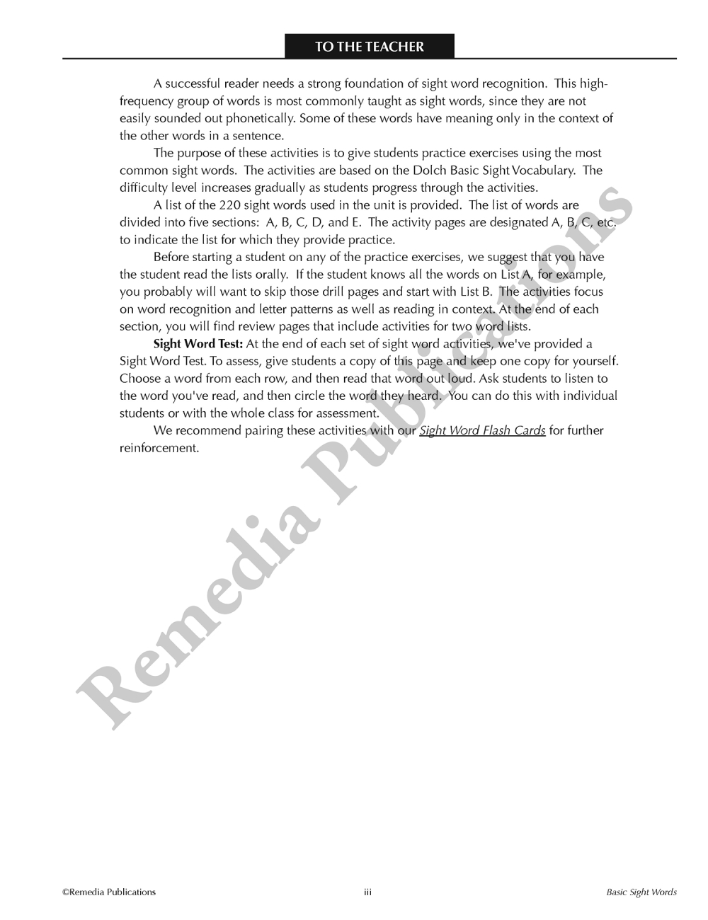 This practical book is perfect for students who have been introduced to essential sight words, but still need additional practice to help them reach mastery levels. Based on the Dolch List, this book makes up a comprehensive list of words most commonly used in everyday reading and speaking. So get your students on the road to reading success with this essential book! Book 1 of 2.