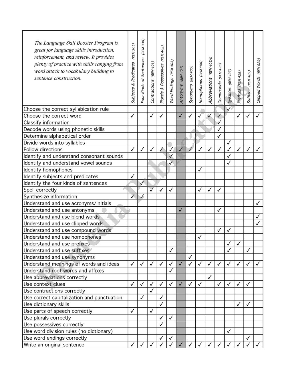 Part of the Skill Booster Series, this flexible book is superb as an introduction or review. Its specific focus allows repeated practice and is a terrific way to help students prepare for standardized tests. In addition, it can be incorporated into both skill-based and whole-language programs.