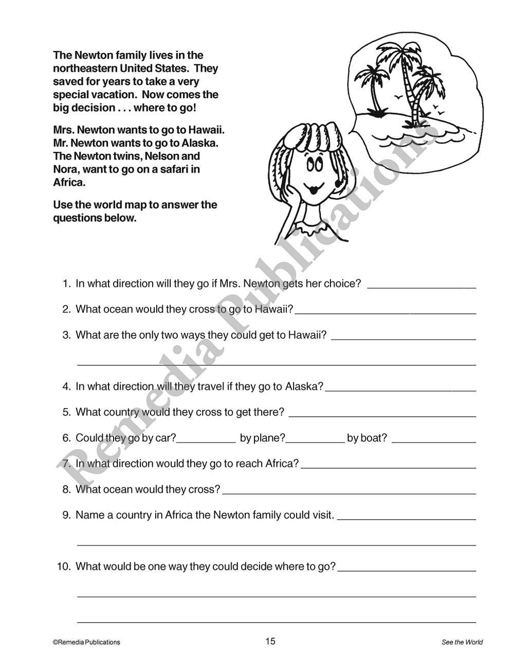 Students zero in on specific areas of the world as they use the colorful fold-out map (included, measures 11"x17") and a variety of other maps to learn about other lands.