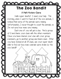 In the Zoo Math Mystery, the zoo bandit has stolen animals from Mr.LaZoo, but unfortunately, Mr.LaZoo isn't sure how many animals he started out with. The students work together to find out how many animals Mr.LaZoo had, how many animals the zoo bandit had stolen, and how many animals Mr.LaZoo has left.
