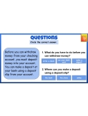 Students will learn the advantages of keeping their money safe in a checking account and how to easily access that money. There is explicit information about how to Write a Check, Fill Out a Deposit Slip, Use a Debit Card and Fill Out a Transaction Register.