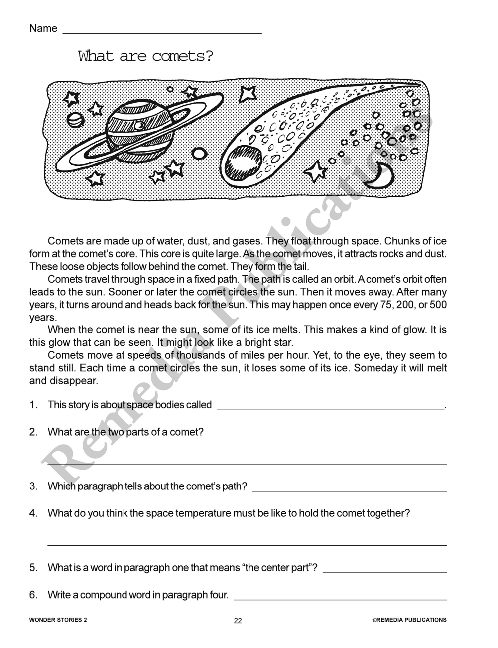 Following each story, comprehension activities focus on the following basic skills: finding the main idea, finding a fact, locating an answer, inference, vocabulary, reading for details, word analysis, and more!