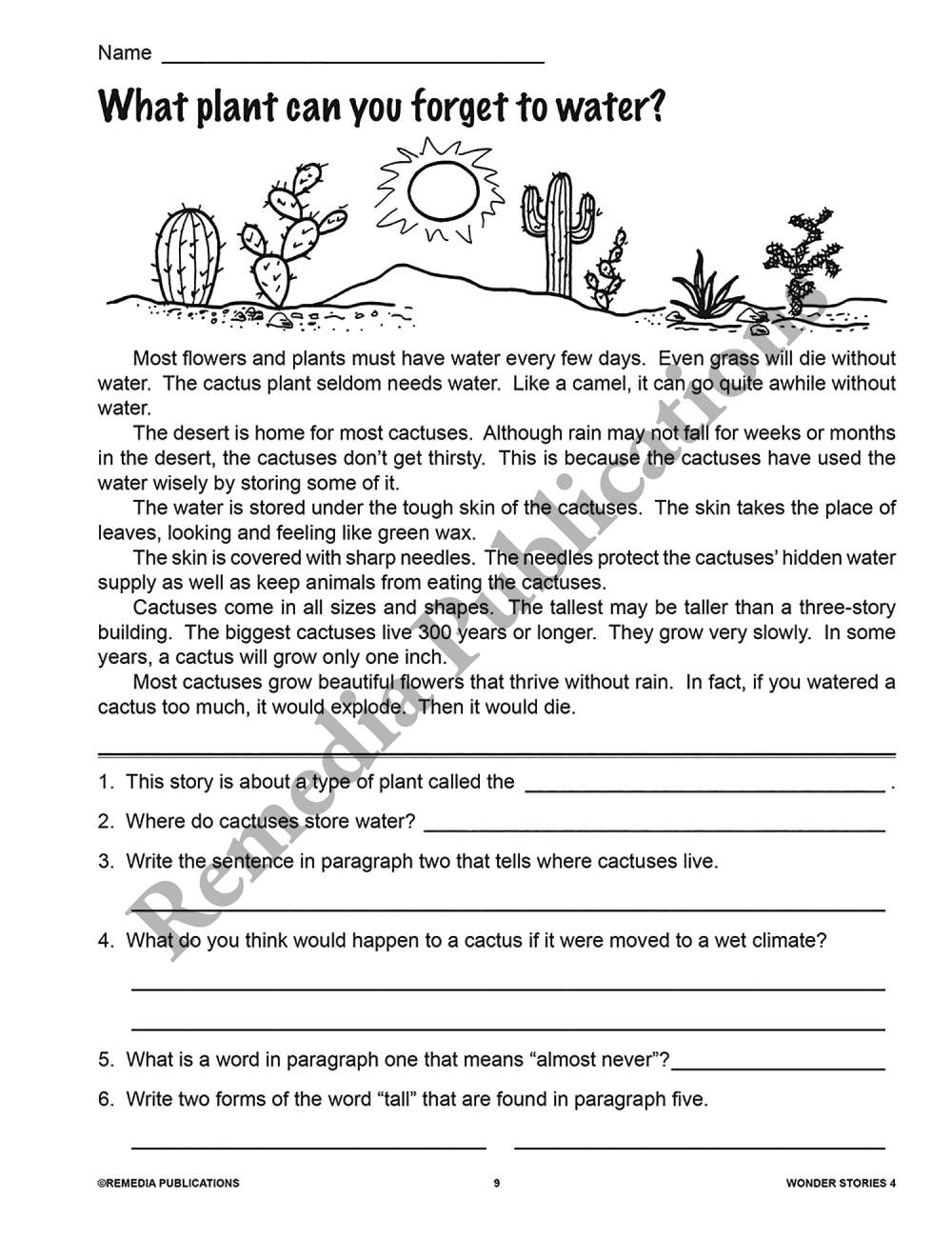 Following each story, comprehension activities focus on the following basic skills: finding the main idea, finding a fact, locating an answer, inference, vocabulary, reading for details, word analysis, and more!